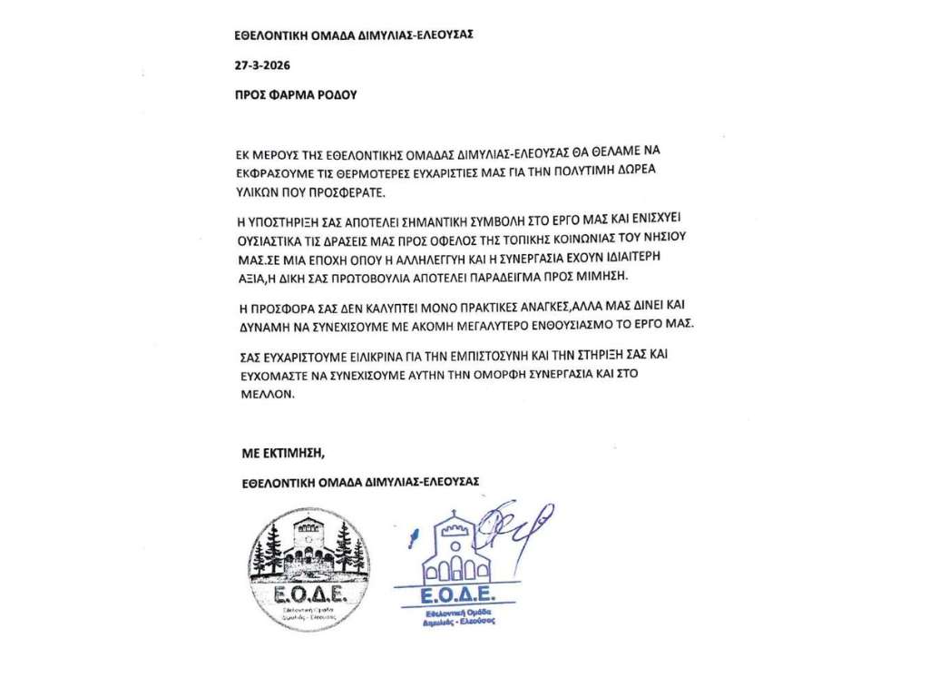 The support for EODE is one of the Corporate Social Responsibility initiatives carried out by Farma of Rhodes. However, the volunteers’ work is ongoing and demanding, and support for equipment remains a priority.